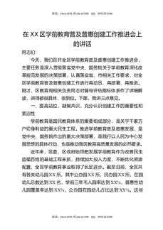 在XX区学前教育普及普惠创建工作推进会上的讲话.docx