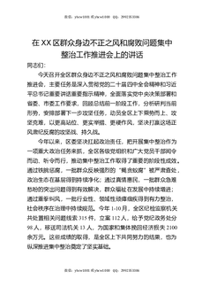 在XX区集中整治群众身边不正之风和腐败问题工作推进会上的讲话稿.docx