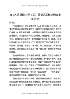 在XX区街道乡党(工)委书记工作交流会上的讲话.docx