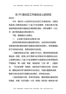 在XX县社区工作座谈会上的讲话.docx