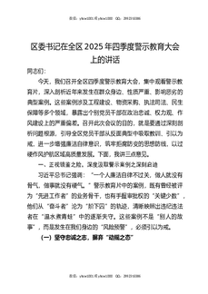 区委书记在全区2025年四季度警示教育大会上的讲话.docx