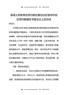 县域义务教育优质均衡发展自治区督导评估反馈问题整改专题会议上的讲话.docx