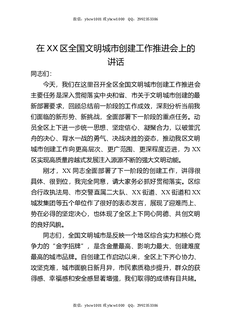 在XX区全国文明城市创建工作推进会上的讲话.docx