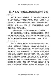 在XX区城中村改造工作推进会上的讲话稿.docx