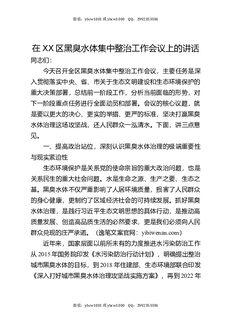 在XX区黑臭水体集中整治工作会议上的讲话.docx