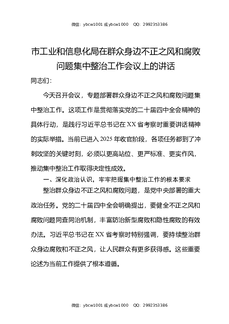 市工业和信息化局在群众身边不正之风和腐败问题集中整治工作会议上的讲话.docx