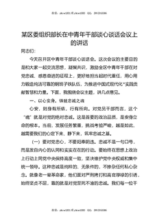 某区委组织部长在中青年干部谈心谈话会议上的讲话.docx