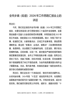全市乡镇(街道)2026年工作思路汇报会上的讲话.docx