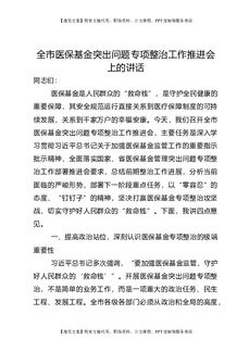 全市医保基金突出问题专项整治工作推进会上的讲话.docx