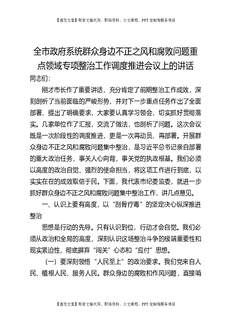 全市政府系统群众身边不正之风和腐败问题重点领域专项整治工作调度推进会议上的讲话.docx