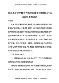 区冬春火灾防控工作暨高层建筑排查整治行动部署会上的讲话.docx