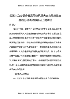区第六次安委会暨高层建筑重大火灾隐患排查整治行动动员部署会上的讲话.docx