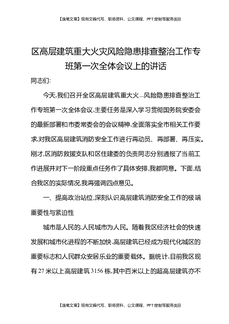 区高层建筑重大火灾风险隐患排查整治工作专班第一次全体会议上的讲话.docx