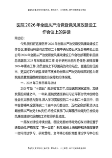 医院2026年全面从严治党暨党风廉政建设工作会议上的讲话.docx
