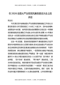 在2026全面从严治党党风廉政建设大会上的讲话.docx