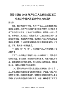 县委书记在2025年产业工人队伍建设改革工作推进会暨产改联席会议上的讲话.docx