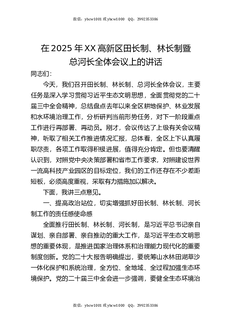 在2025年XX高新区田长制、林长制暨总河长全体会议上的讲话.docx