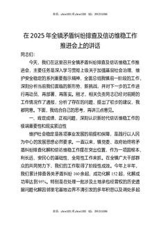 在2025年全镇矛盾纠纷排查及信访维稳工作推进会上的讲话.docx