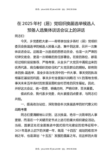 在2025年村(居)党组织换届选举候选人预备人选集体谈话会议上的讲话.docx
