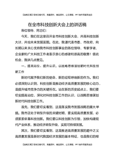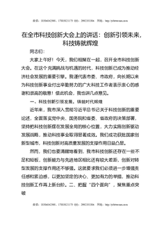 在全市科技创新大会上的讲话:创新引领未来,科技铸就辉煌.docx