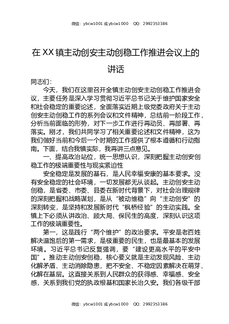 在XX镇主动创安主动创稳工作推进会议上的讲话.docx