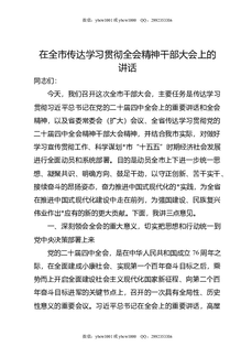 在全市传达学习贯彻全会精神干部大会上的讲话.doc