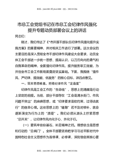 市总工会党组书记在市总工会纪律作风强化提升专题动员部署会议上的讲话.doc
