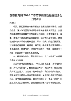 在市教育局2026年春节节前廉政提醒谈话会上的讲话.doc