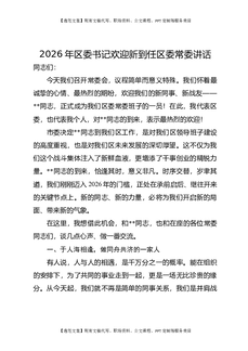 2026年区委书记欢迎新到任区委常委讲话.docx