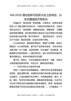 AIIC2025酒业创新与投资大会上的讲话:以生态酿造创万物生长.docx