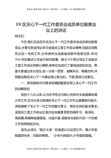 XX区关心下一代工作委员会成员单位联席会议上的讲话.docx