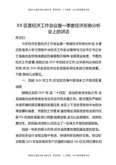 XX区委经济工作会议暨一季度经济形势分析会上的讲话.docx
