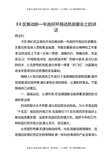 XX区推动新一年良好开局动员部署会上的讲话.docx