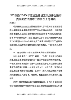 XX市委2025年度法治建设工作点评会暨市委全面依法治市工作会议上的讲话.docx
