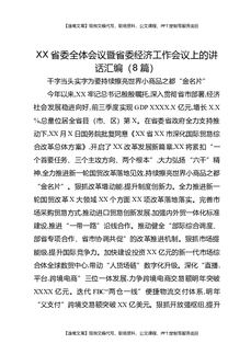 XX省委全体会议暨省委经济工作会议上的讲话汇编(8篇).docx
