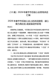 (11篇)2026年春节节后收心会领导讲话汇编.docx