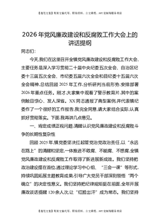 2026年党风廉政建设和反腐败工作大会上的讲话提纲.docx