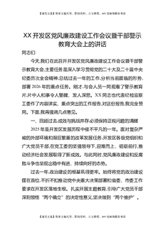 XX开发区党风廉政建设工作会议暨干部警示教育大会上的讲话.docx