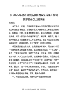 全市巩固拓展脱贫攻坚成果工作调度部署会议上的讲话.docx