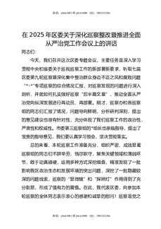 在2025年区委关于深化巡察整改暨推进全面从严治党工作会议上的讲话.doc