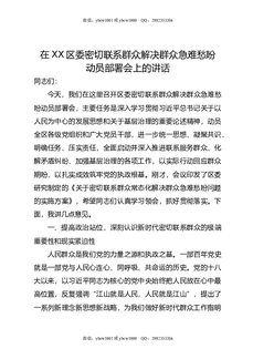 在XX区委密切联系群众解决群众急难愁盼动员部署会上的讲话.doc
