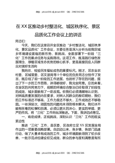 在XX区推动乡村整洁化、城区秩序化、景区品质化工作会议上的讲话.docx