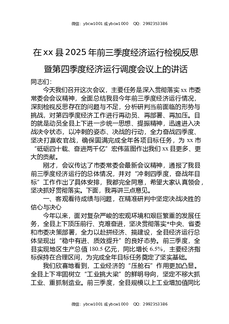 在XX县2025年前三季度经济运行检视反思暨第四季度经济运行调度会议上的讲话.docx