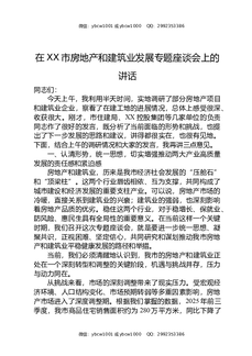 在XX市房地产和建筑业发展专题座谈会上的讲话.docx