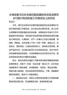 乡镇党委书记在全镇巩固拓展脱贫攻坚成果同乡村振兴有效衔接工作推进会上的讲话.docx