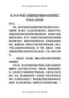 县医院医疗质量与安全管理工作会议上的讲话.docx