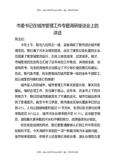 市委书记在城市管理工作专题调研座谈会上的讲话.docx