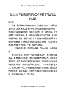 街道意识形态工作专题学习会议上的讲话.docx
