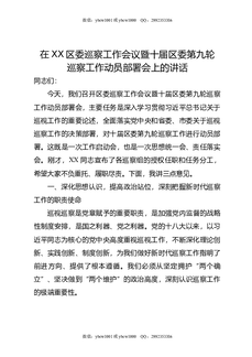 在XX区委巡察工作会议暨十届区委第九轮巡察工作动员部署会上的讲话.doc