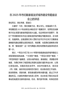 市妇联家庭友好城市建设专题座谈会上的讲话.docx